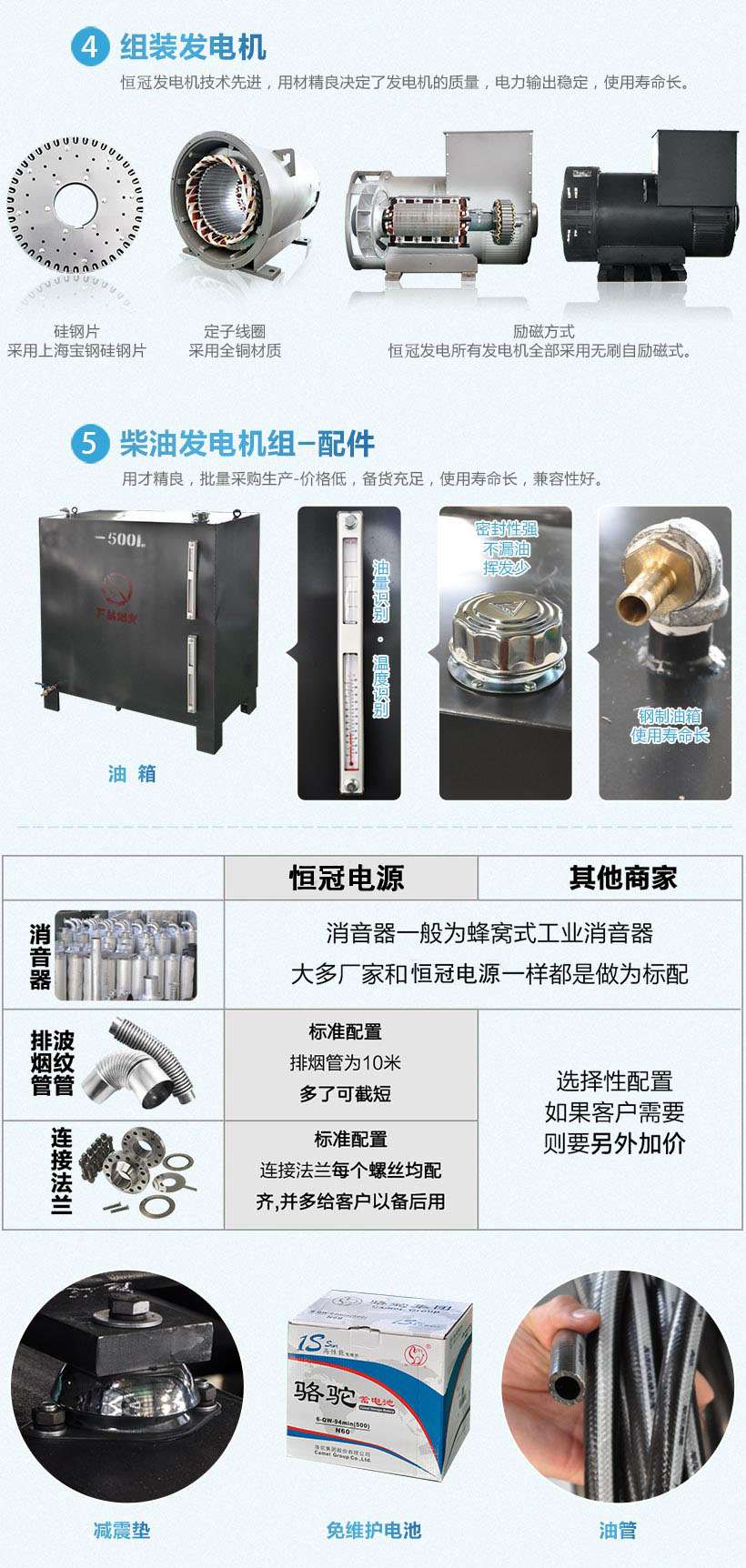 電機選用MARATHON,STAMFORD,恒冠等知名品牌無刷發(fā)電機,該發(fā)電機采用凸極整體轉(zhuǎn)子技術(shù),H級絕緣,鋼板機身,性能先進,運行穩(wěn)定,可靠。